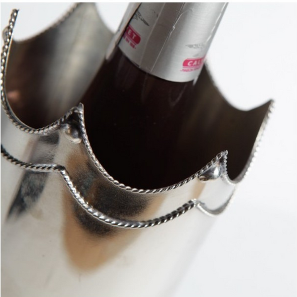 Cache-bouteille en maillechort disponible dans la catégorie "Arts de la table" sur la vitrine en ligne d’Artisanat Design. De fabrication artisanale, cet article vous est proposé à PETIT PRIX.
